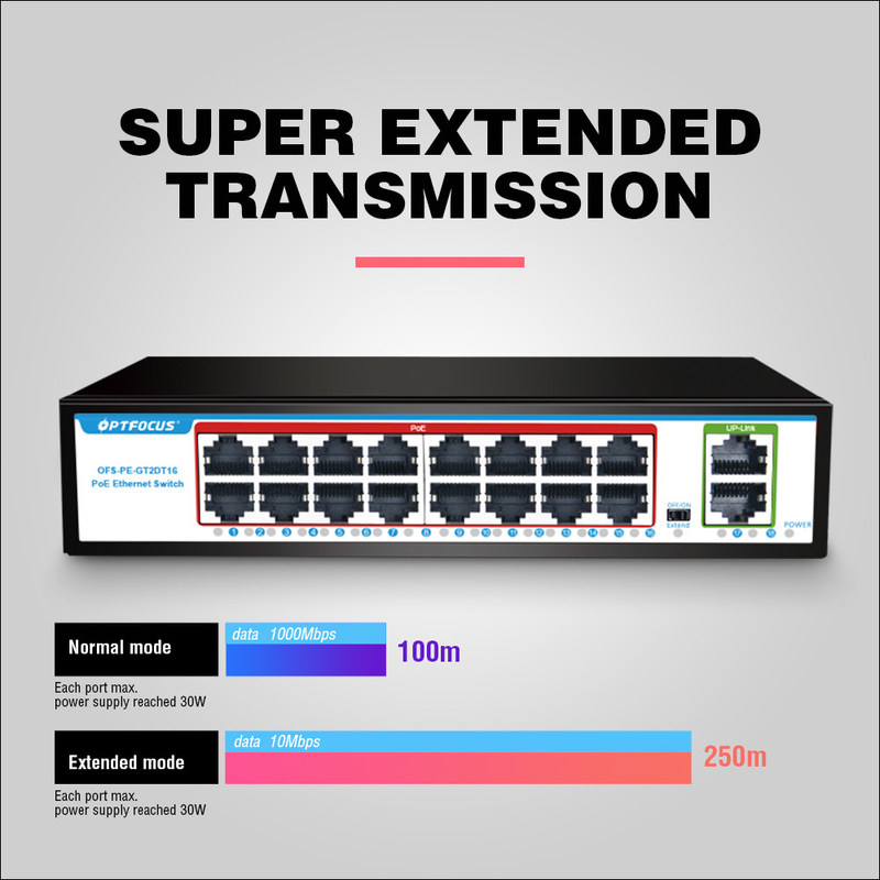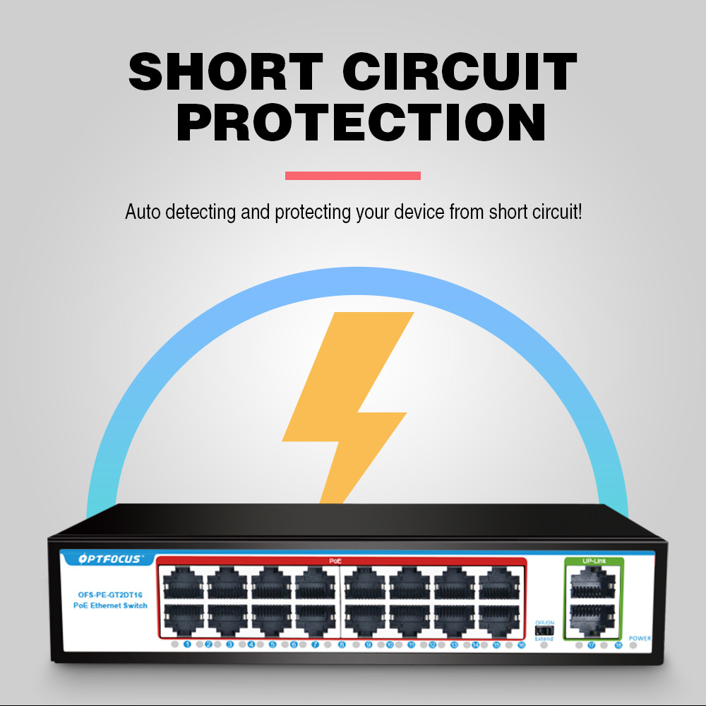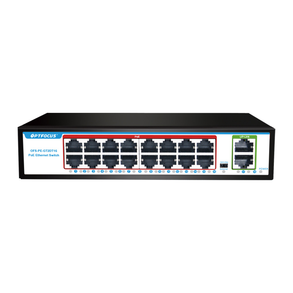 OFS-PE-GT2DT16 | พอร์ต POE 16*10/100mbps,พอร์ต UP-Link 2*10/100/1000mbps,แหล่งจ่ายไฟในตัว |